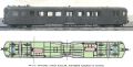 • Nombre de compartiments : 2 voyageurs, autour de la plateforme d'entrée + 1 postal + 1 bagages + 1 WC + 1 Chaudière